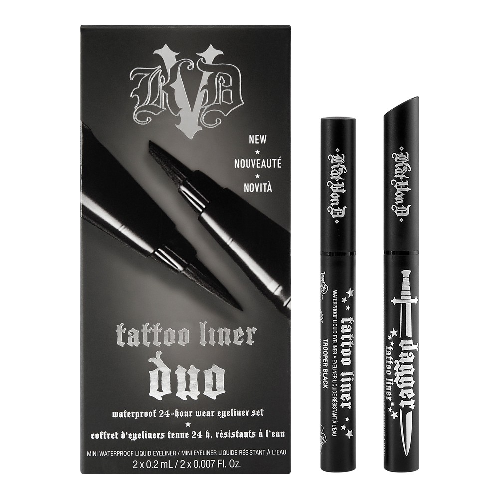 Kat von d tattoo liner mini. Tattoo liner is kvd vegan beauty s award winning bestseller for a reason the vegan high pigment formula features all day long wear that s waterproof and smudge resistant so you can trust your eyeliner to stay put. Kat von d tattoo liner trooper mini 0 007 ounce. 3 0 out of 5 stars 6. The superfine and flexible brush tip glides across the lashline for incredibly fluid application allowing you to create a variety of looks with ease.